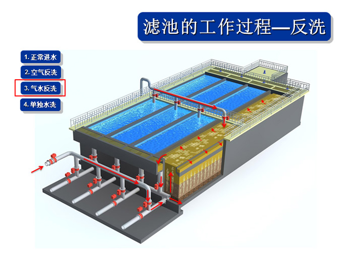 反洗水泵:為濾池濾料的反沖洗和氮氣釋放系統提供反沖洗水。