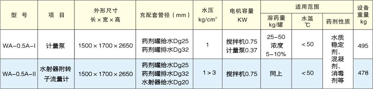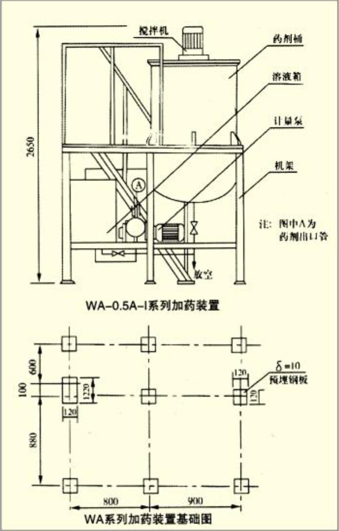 本公司生產的WA系列加藥設備是專供投加水質穩定劑、混凝劑、消毒劑等多種性能的水處理藥劑。