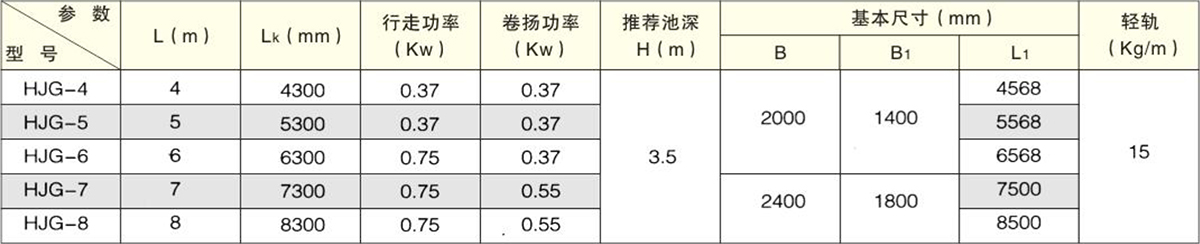 規(guī)格型號及技術參數(shù)(池寬4-8m)