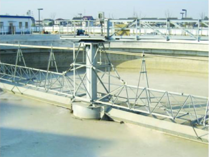 LXG型中心傳動吸泥機適用于周邊進水,周邊出水的沉淀池排泥。可克服活性污泥比重小,含水量高,難以刮集的困難,即在吸泥的同時,部分污泥也可由刮泥板刮集而直接排出,并可任意調節吸泥量。