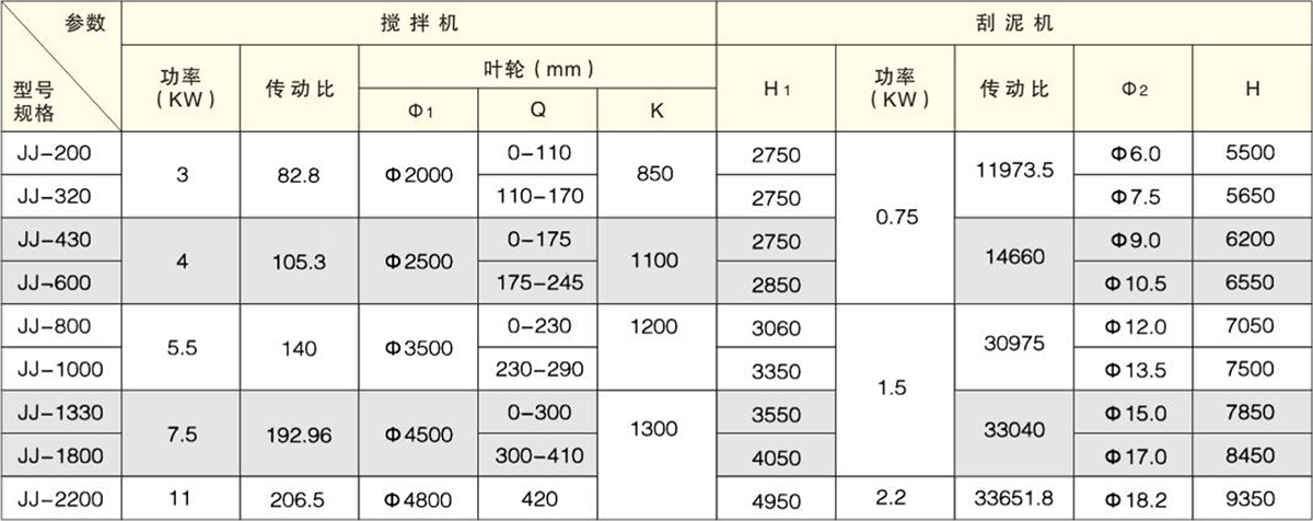 JJ型機(jī)械加速澄清池?cái)嚢琛⒐文鄼C(jī)用于給水工程的加速澄清池,已投入混凝劑的原水混合液與澄清池的活性泥渣通過澄清攪拌的提升作用形成泥渣回流和接觸反應(yīng),以結(jié)成較大絮凝體,由分離室進(jìn)行沉淀分離,剩余污泥通過刮泥機(jī)刮集至排泥斗由靜水壓力排出。