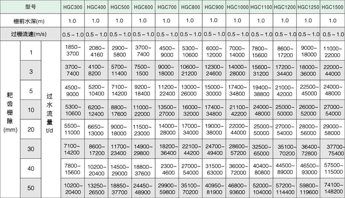 2、注明實際工況和柵條間隙